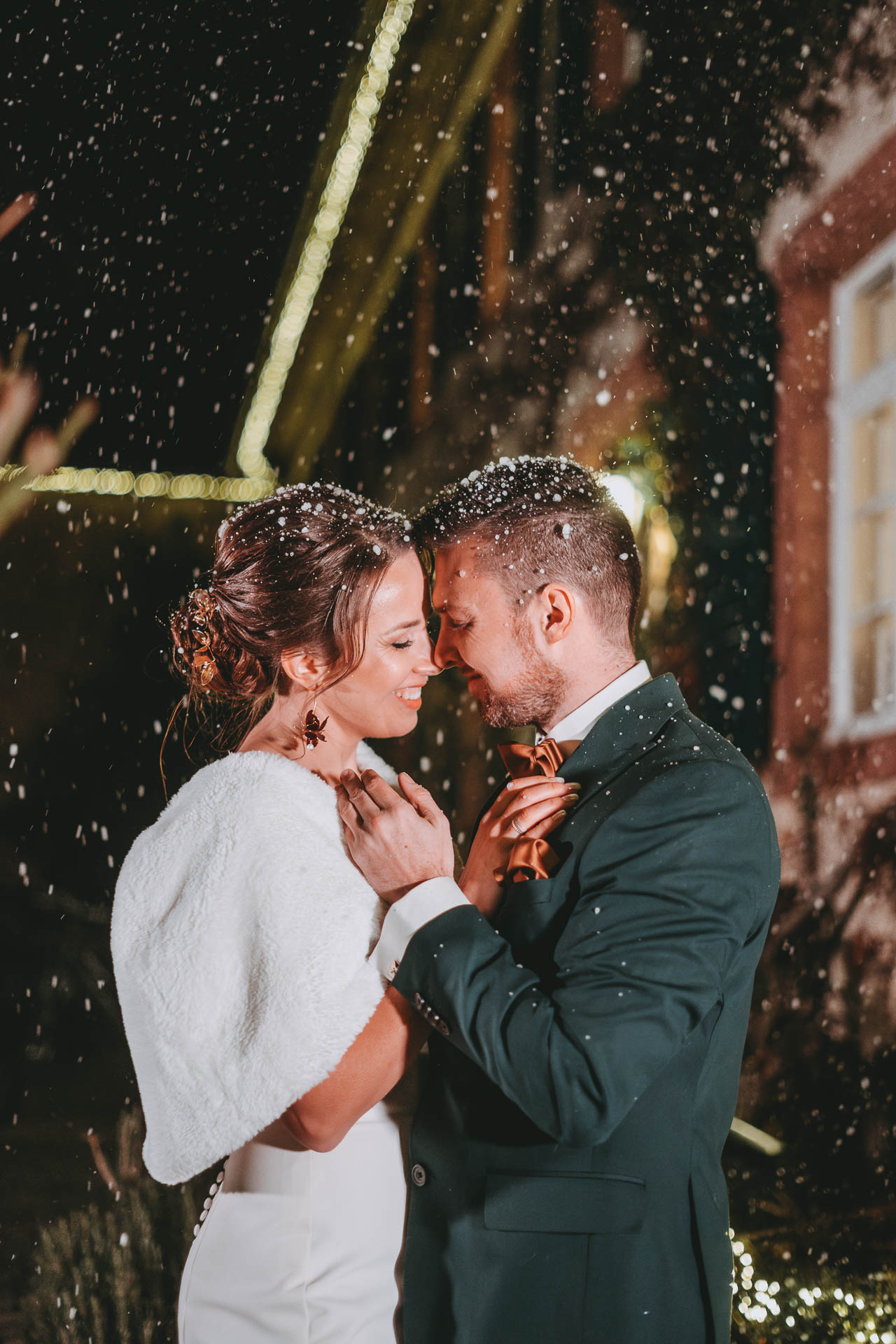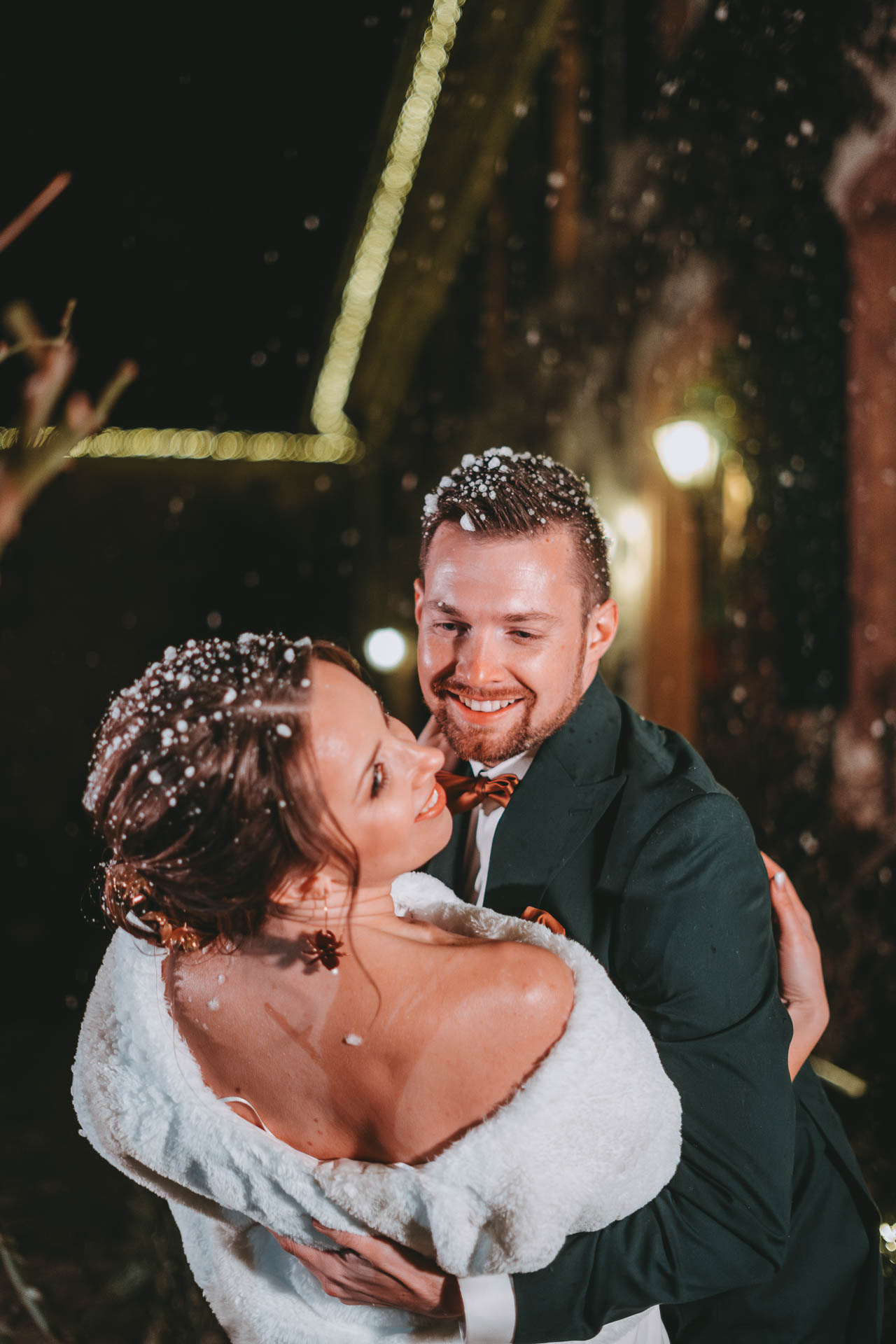 Das Shooting wurde von Rachel vom Honeymoon Atelier geplant, und wir durften mit wirklich tollen Dienstleistern zusammenarbeiten, die genauso viel Herzblut in das Shooting gesteckt haben wie wir. Das Hofgut Habitzheim war die perfekte Location: stilvoll, gemütlich und genau richtig für winterliche Hochzeitsbilder. Und auch wenn der Schnee aus einer Schneemaschine kam – er sah fantastisch aus und rundete die weihnachtliche Stimmung perfekt ab.