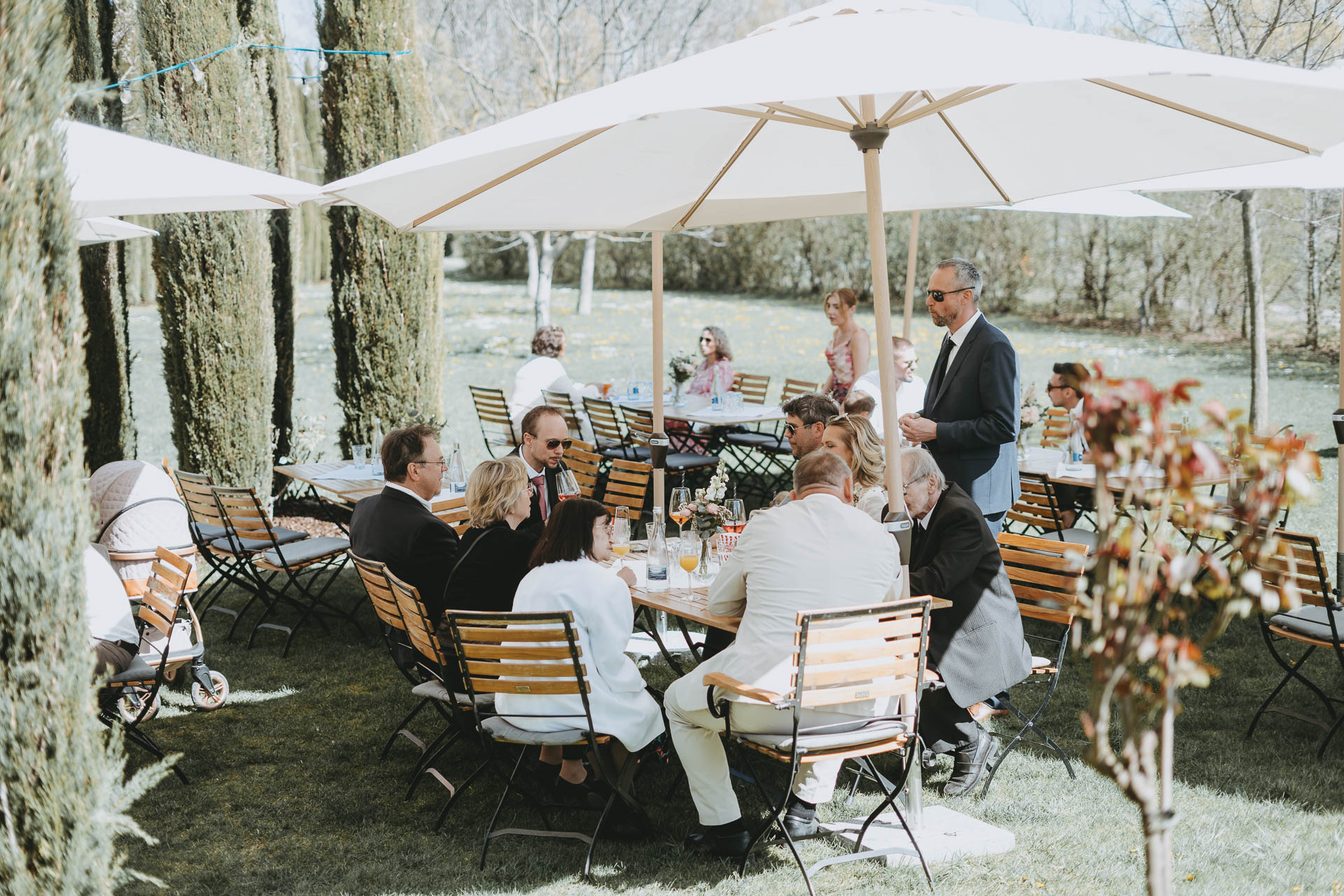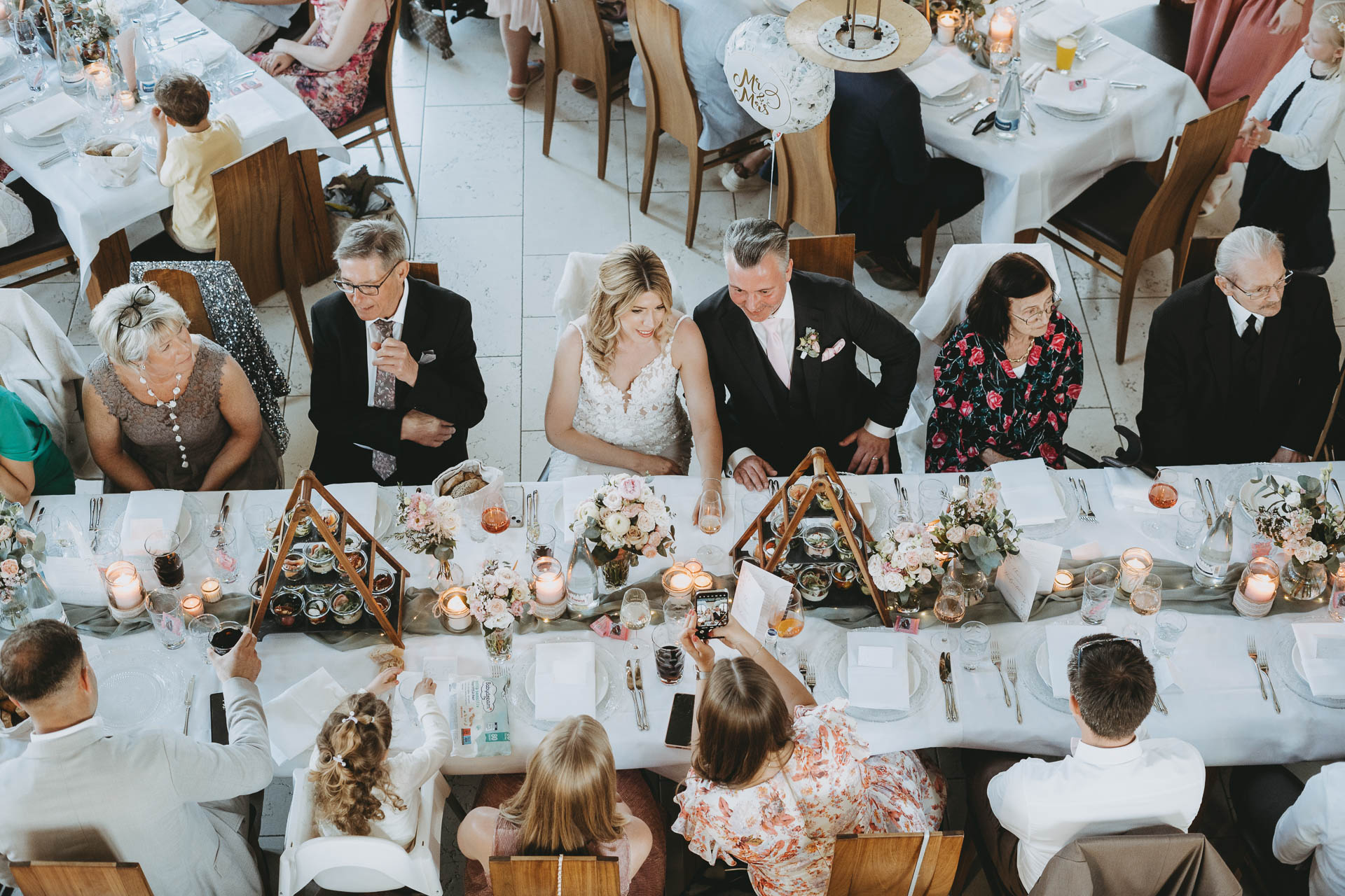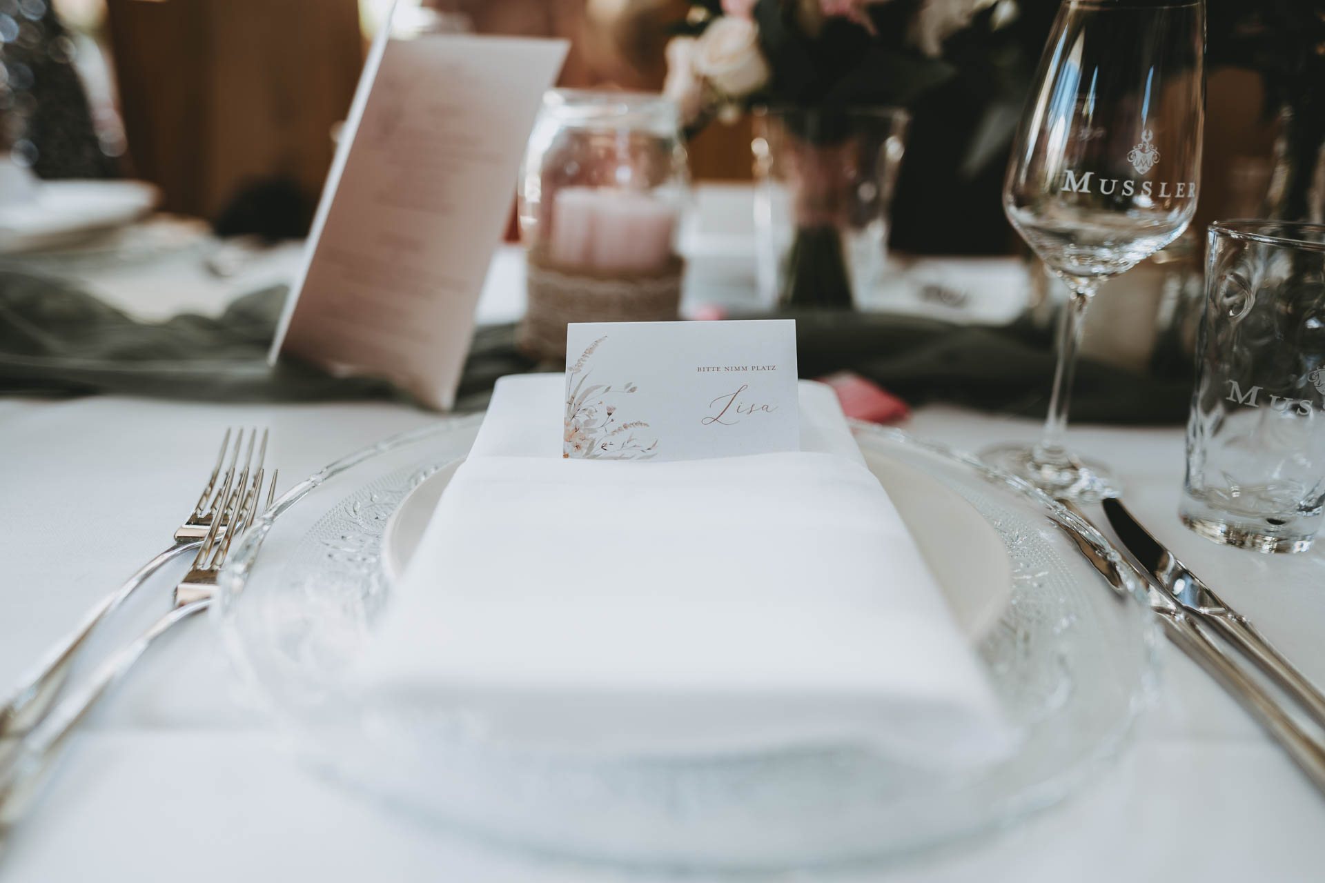 Nach der Trauung ging es ins Weingut Mussler, wo die Feier in stilvollem Ambiente stattfand. Elegant, aber gleichzeitig entspannt – ein Tag, der genau zu Julia und Michael passte: herzlich, stimmig und voller schöner Augenblicke.