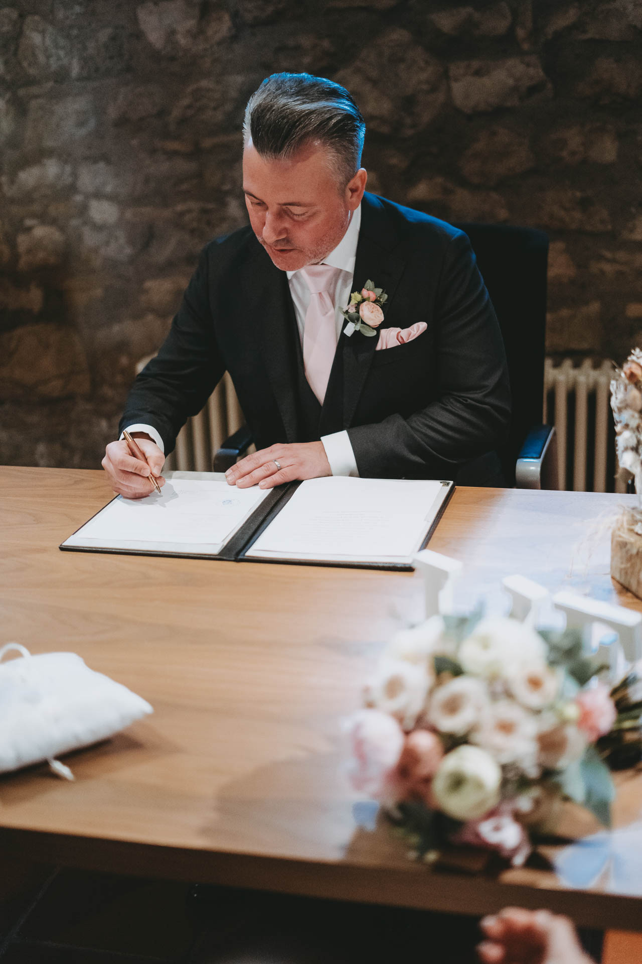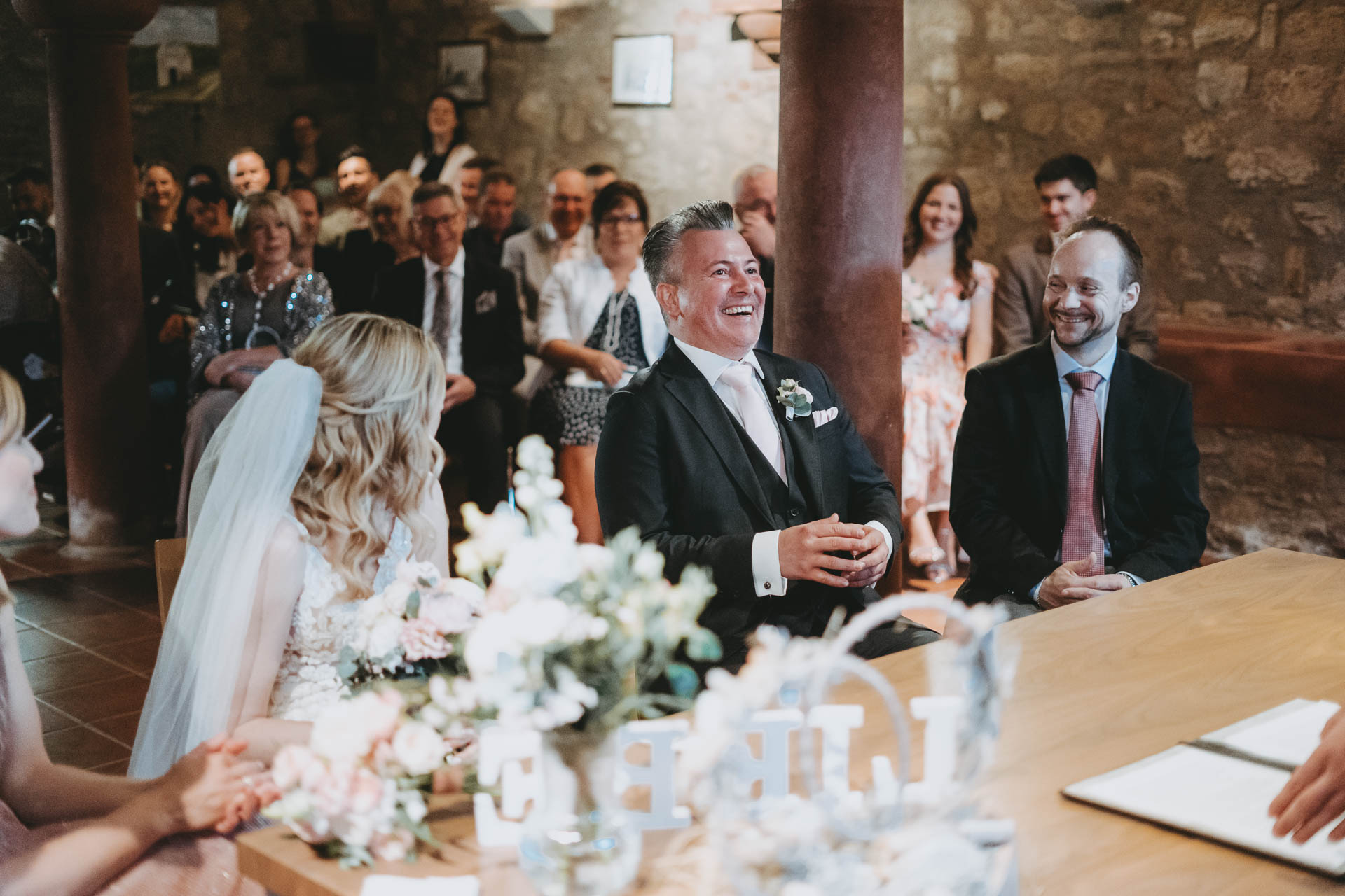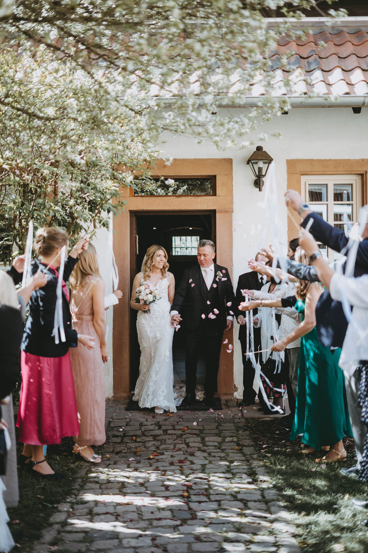 Julia und Michael hatten im April perfektes Wetter – Sonnenschein, angenehme Temperaturen und ein Tag, der sich sofort leicht und entspannt anfühlte. Der Tag begann ruhig beim Getting Ready zu Hause, bevor es zur standesamtlichen Trauung in die Anhäuser Mühle nach Monsheim ging. Die Location strahlte Wärme und Persönlichkeit aus, und die Trauung war von Anfang bis Ende ein sehr schöner, besonderer Moment.
